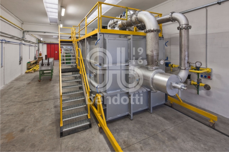 Il forno di prova è stato installato presso le officine dell’ESA a Curno (vicino a Milano): è dotato di un recuperatore centralizzato ed è stato progettato per raggiungere una capacità termica di circa 3.500 Mcal /h.