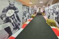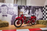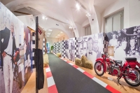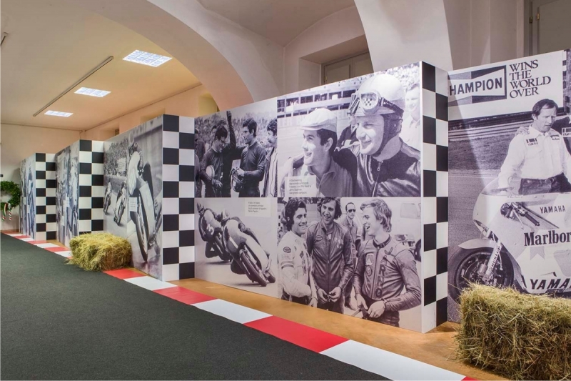 Il tutto immerso in una scenografia, ideata da Massimo Negrini di negrini+varetto, che ricrea l’ambiente delle vecchie gare motociclistiche, con alle pareti l’interminabile elenco dei 123 GP vinti.