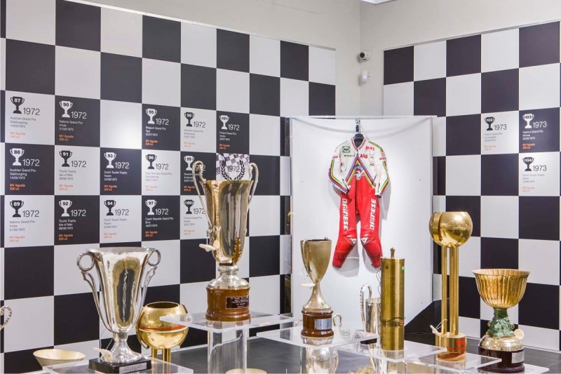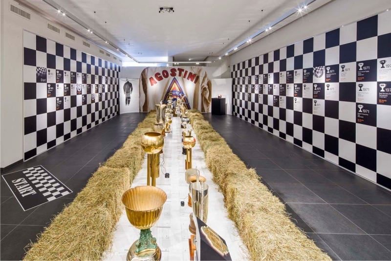 Definita “una bomboniera”, la mostra ha permesso l’esposizione al pubblico per la prima volta di cimeli della carriera di Agostini, in un percorso mozzafiato: immagini dei momenti storici, trofei mai mostrati prima, caschi di eccezionale valore, coppe strette dal campione sui podi più importanti del mondo, il primo e l’ultimo casco indossati da Agostini accompagnati dalla prima e dall’ultima tuta della sua carriera.
